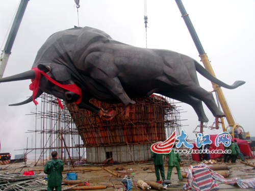 據了解,雕塑“神牛”高8米,長21米,重達18噸,為全國最大,它成為南昌市又一標志性雕塑。